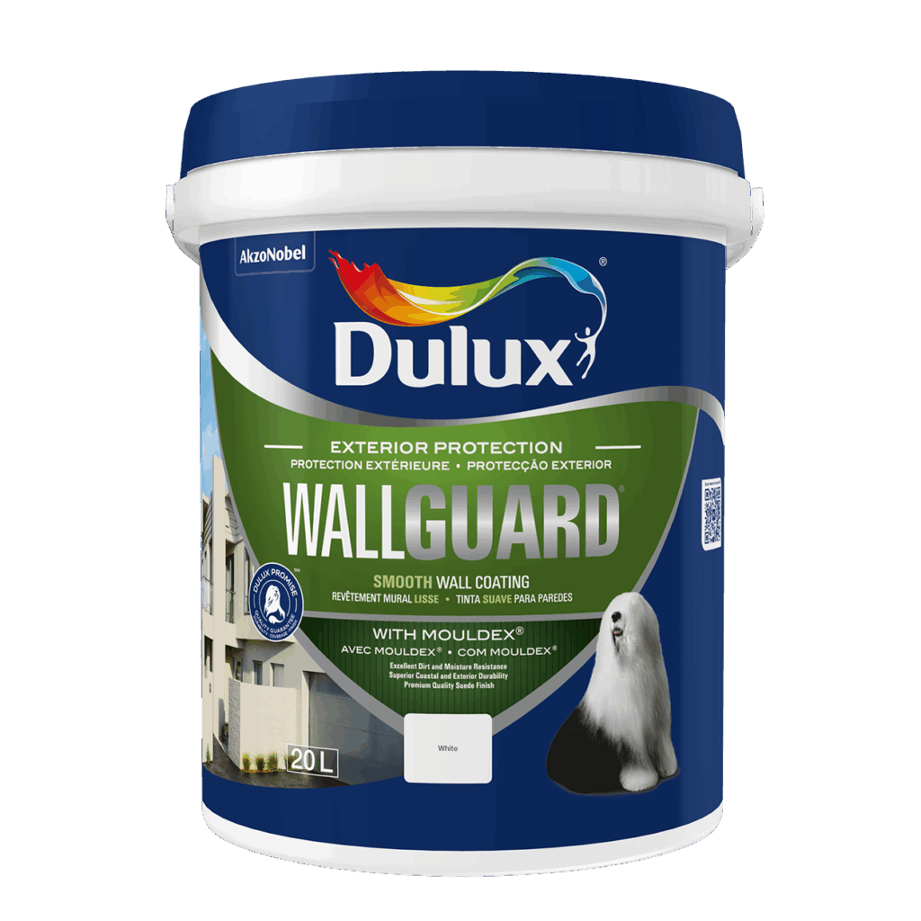 - Dulux Wallguard with Mouldex™ provides mould resistance and offers a suede (mid-sheen) finish that’s dirt-shedding and water-repellent.